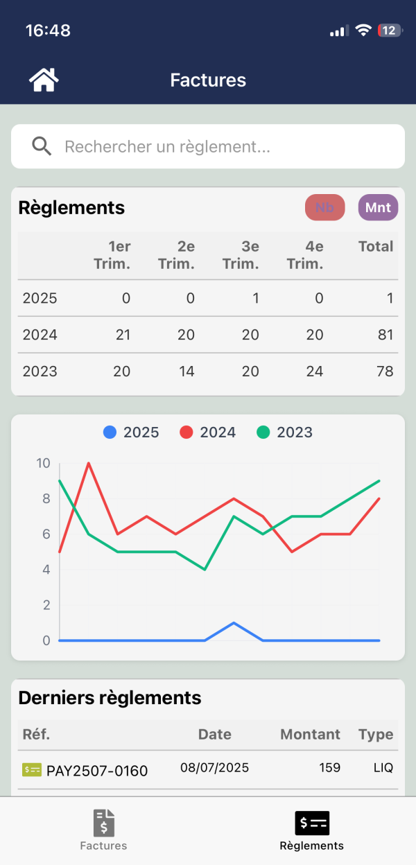 Dans l'onglet Factures de Dolismart-app, vous trouverez les onglet :