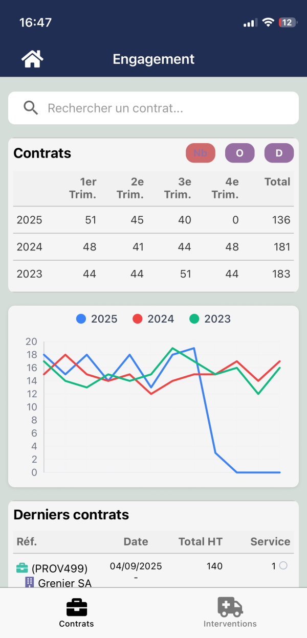 Dans l'onglet Engagement de Dolismart-app, vous trouverez les onglet :
