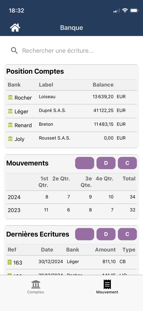 Dans l'onglet Banque de Dolismart-app, vous trouverez les onglet :