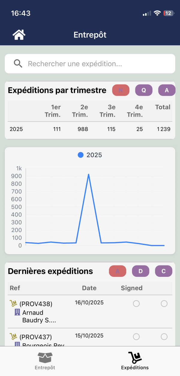 Dans l'onglet Stock de Dolismart-app, vous trouverez les onglet :