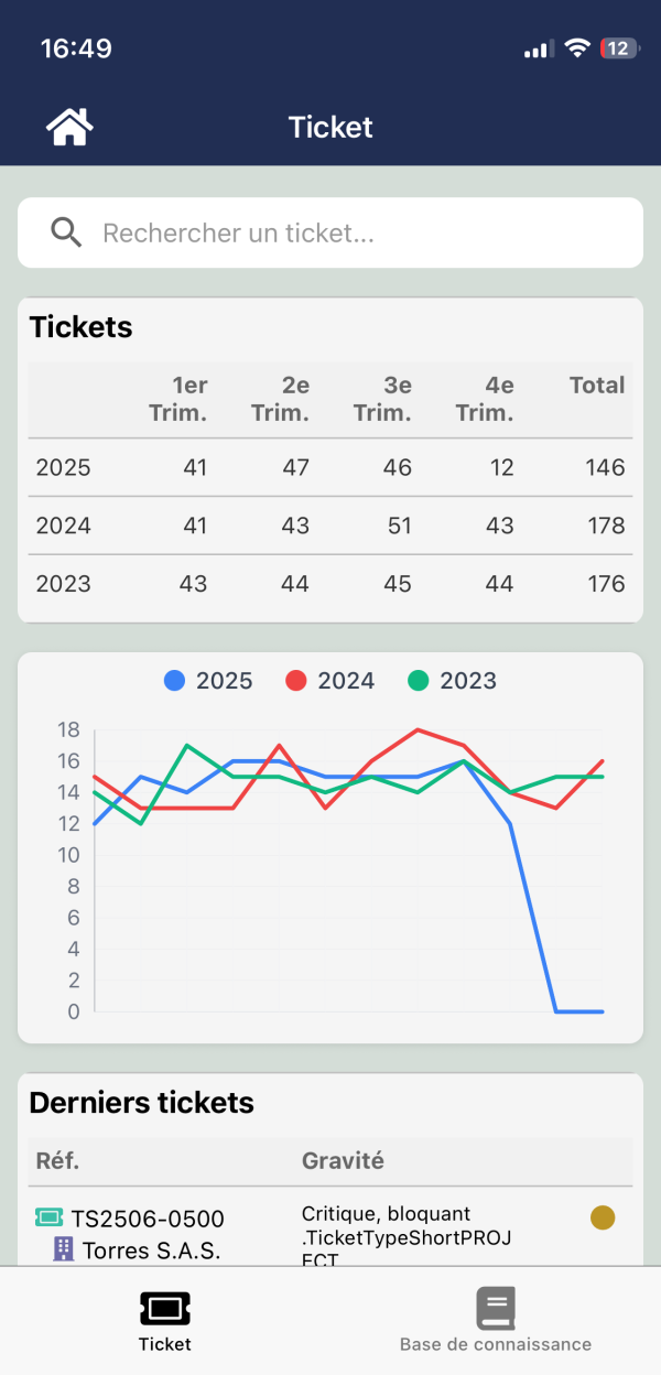Dans l'onglet Tickets de Dolibarr-app, vous trouverez les onglet :