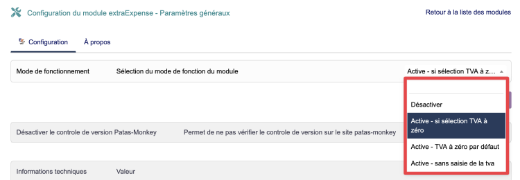 ExtraExpense est un module qui permet, pour les notes de frais avec TVA à 0 %, de saisir simultanément les montants HT et TTC sans blocage. |