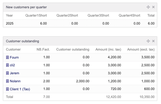 • New clients per quarter: Displays the number of new clients created each quarter