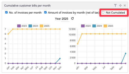 This type of widget displays graphs by cumulative or non-cumulative number or quantity over a year.