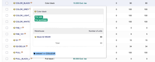 In the case of product tooltips, you will be able to access the details of the warehouses containing the product. |