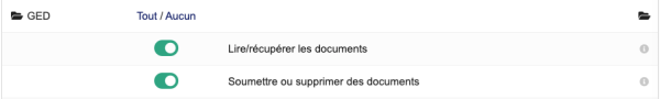 Attention, la gestion des habilitations d'accès nécessite de sauvegarder la ligne avec l'icone de sauvegarde verte en bout de ligne.