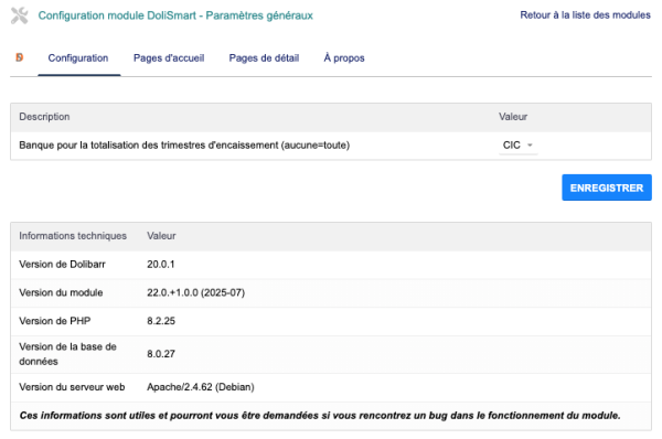 Après chaque mise à jour du module Dolismart, il est nécessaire de le désactiver puis de le réactiver afin d’assurer son bon fonctionnement.