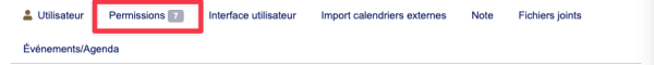 L'accès aux habilitations de l'utilisateur s'effectue depuis l'onglet des permissions de sa fiche