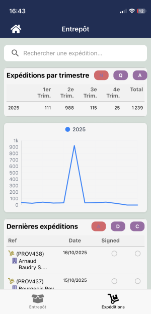 - Tableau des écritures par trimestre avec filtrage (A, D, C)