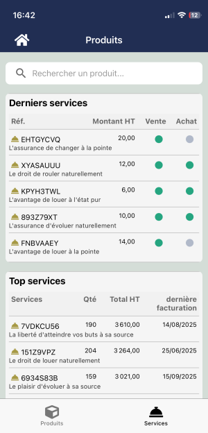 - Tableau des factures par trimestre avec filtrage (Nb, HT, TTC)