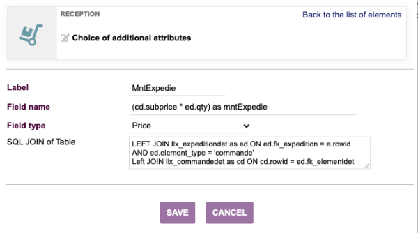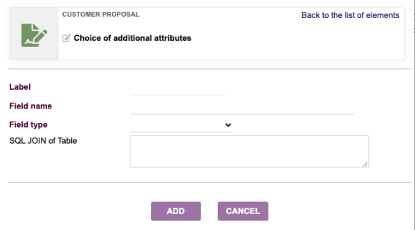 • addition of additional fields available in the native tables of the list or added in a joined table for the field
