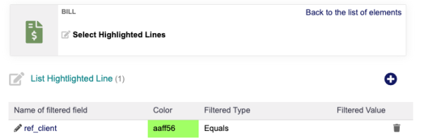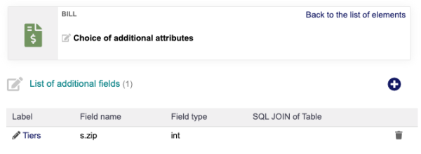 From the list, it is possible to modify an existing field (icon at the beginning of the line) or to delete it (icon at the end of the line)
