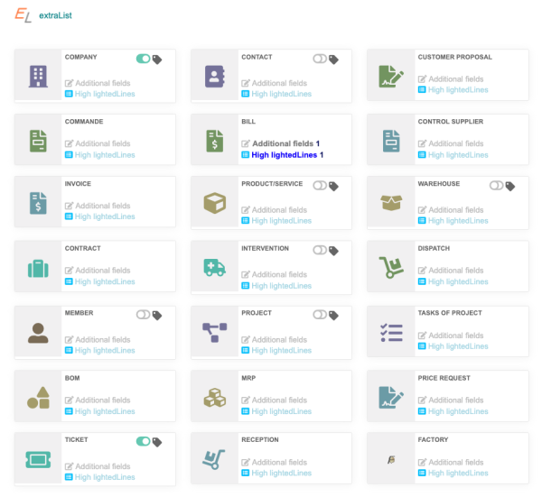Pressing the second gray icon allows you to access the list of additional fields that have already been defined