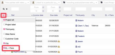 • The name of the field in the database with its prefix (such as s. for company, p. for project, ...), it is possible to use an alias (if you use a calculated field parameter).