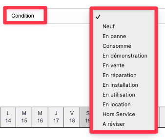 Si vous filtrer en fonction d'une état ; vous n'apercevrait dans le calendrier que les équipements lier à ce même état. |