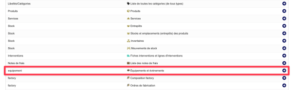 Accéder à la liste d'Equipement