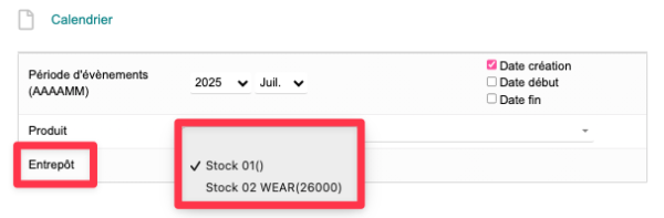 Si vous filtrer en fonction d'un entrepôts ; vous n'apercevrait dans le calendrier que les équipements lier à ce même entrepôts. |