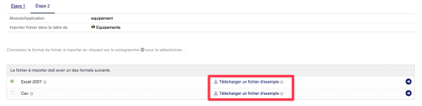 De la même manière que les export, il est possible d'importer des équipements et des évènements avec les fonctions natives de dolibarr
