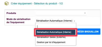 | Gestion par lot d'équipement | Pour enregistrer un lot d’équipements, la sérialisation se fait en saisissant un numéro de version du produit. |