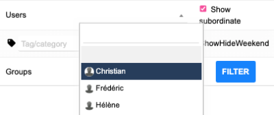 If you have the right to view only your own data and that of your subordinates, you display a checkbox to view them both at the same time or only one person's account.