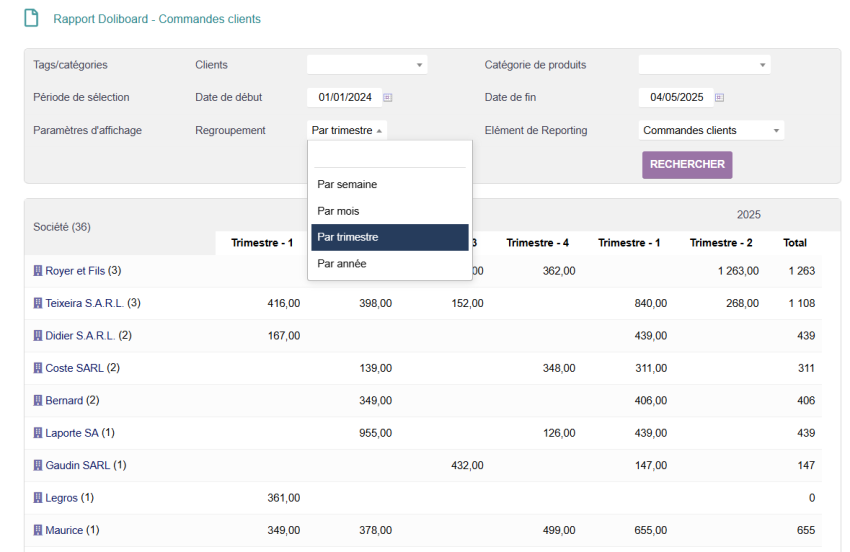 myDoliboard apporte un ensemble de rapport personnalisé dynamique
