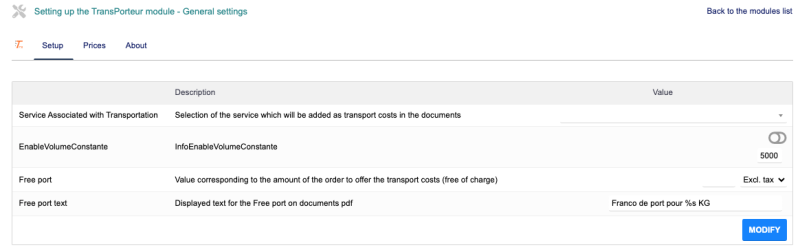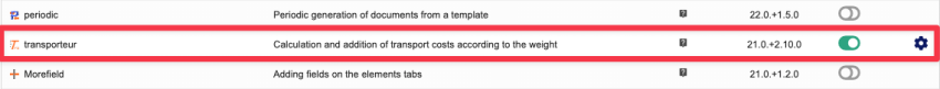 To make the Transporteur module operational, you must activate it. Follow the steps below: